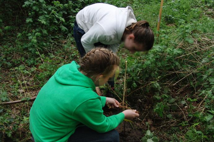 Gemeinsam bauen wir Insektennisthilfen, stellen Greifvogelstangen auf, machen kleine Naturbeobachtungen und besuchen Flächen, die wir früher bepflanzt haben.