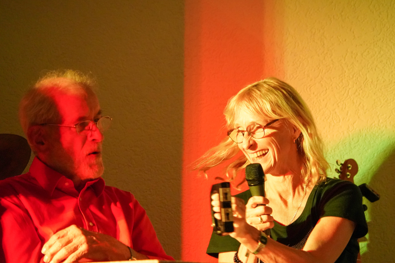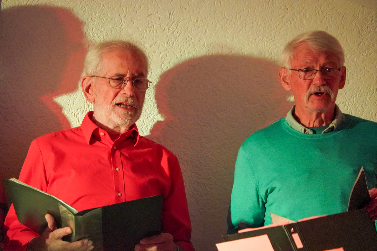 Gedichte & Texte: Helmut Schmidt brachte pointierte Stücke rund um „Mann & Frau“; Gudrun Girts-Johnston begeisterte mit Otto Reutters „Der Überzieher“; Gabriele Busch las den Text „Orplid“ aus dem Nachlass unserer Uli. Martin Exner steuerte ein Kurzgedicht („Vater & Sohn“) bei.